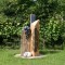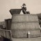 Lydia und Heinrich Hofmann auf einen Holzfass vor der Büttnerwerkstatt Anfang der 1960 Jahre.